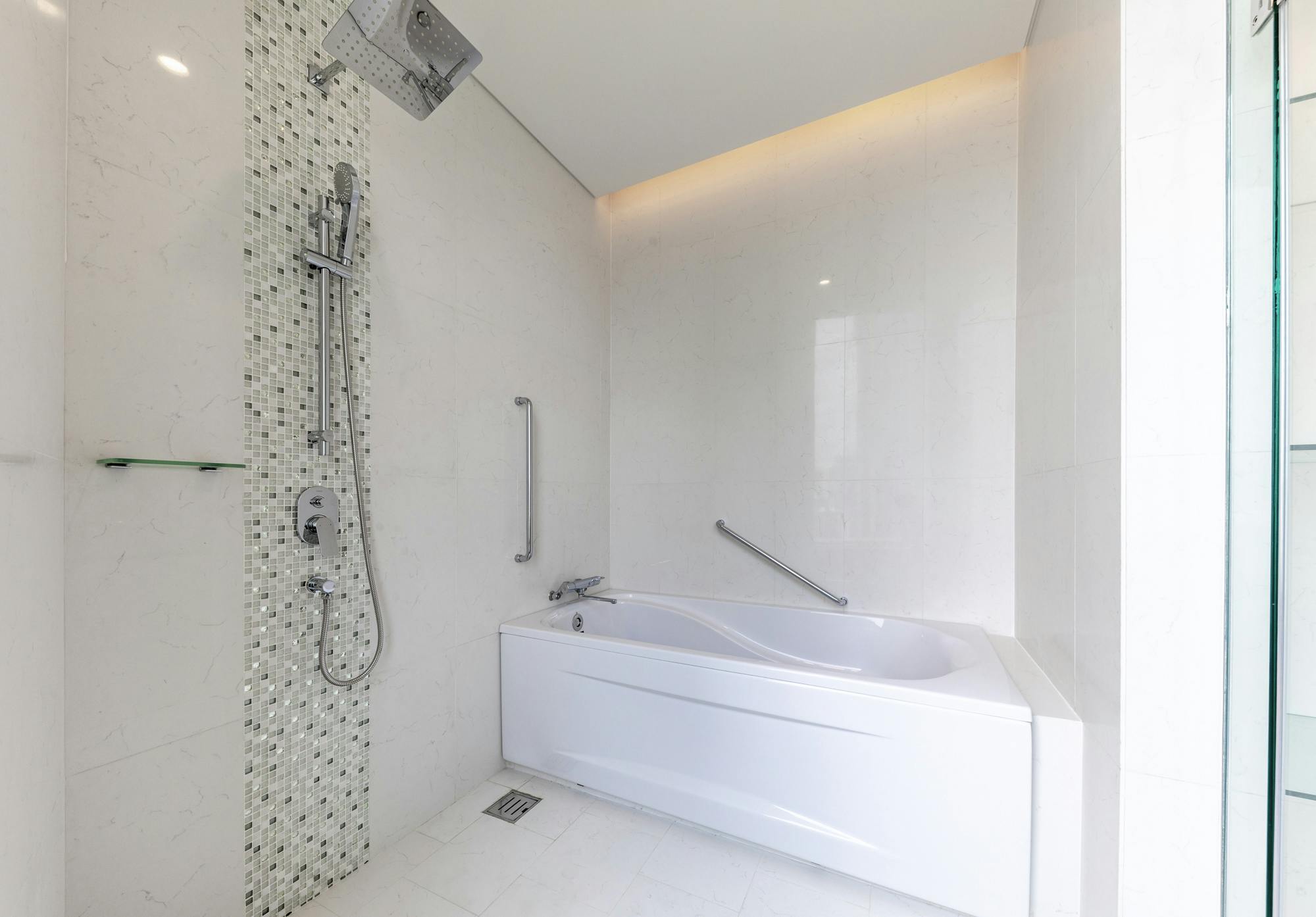 • Bathroom with standing shower and bathtub